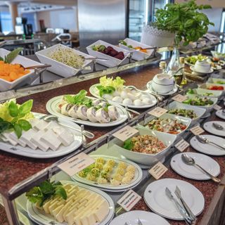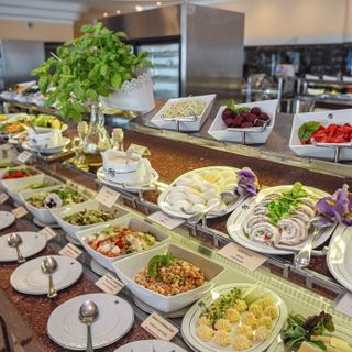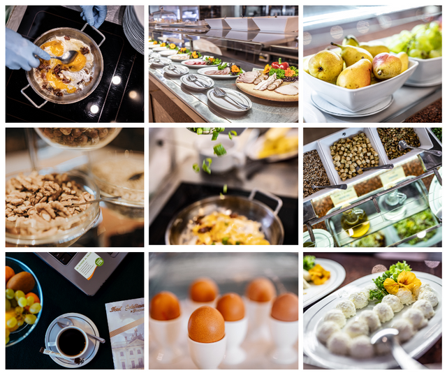 Compose your favorite scrambled eggs or omelet using a wide selection of toppings: bacon, ham, chives, vegetables. The “live cooking” station is complemented by hot dish buffets. You will find classic breakfast dishes and unconventional suggestions for every palate — we invite you to feast in the morning.